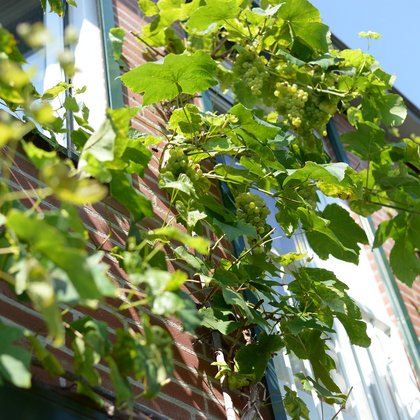 Thomas Uth ist es besonders wichtig, dass sein Vorgarten im Lucie-Simon-Weg 14 in Roisdorf nicht versiegelt ist und bei Starkregen-Ereignissen viel Wasser aufnehmen kann. Durch die Fassadenbegrünung mit Wein verbessert er das Mikroklima am Haus und schafft Lebensraum und Nahrungsquellen für eine Vielzahl von Kleinlebewesen. Der Vorgarten strahlt durch eine sehr dichte und vielfältige Bepflanzung seinen ganz eigenen Charakter aus.