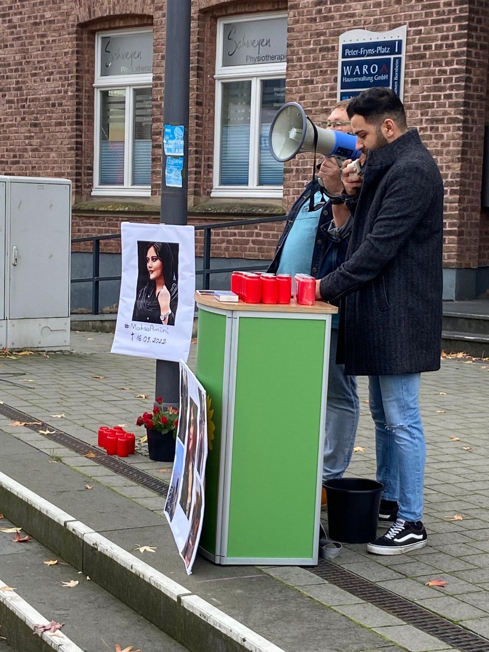 Ich möchte mich zuerst sehr herzlich bei allen für Euer Kommen bedanken. Bornheim ist ja nur eine kleine Stadt und vielleicht denkt man eine Demonstration oder eine Mahnwache in Bornheim ist nicht wichtig, aber ich freue mich über jede und jeden der hier ist und meinen Landsleuten vor allen Dingen den Frauen eine Stimme gibt.