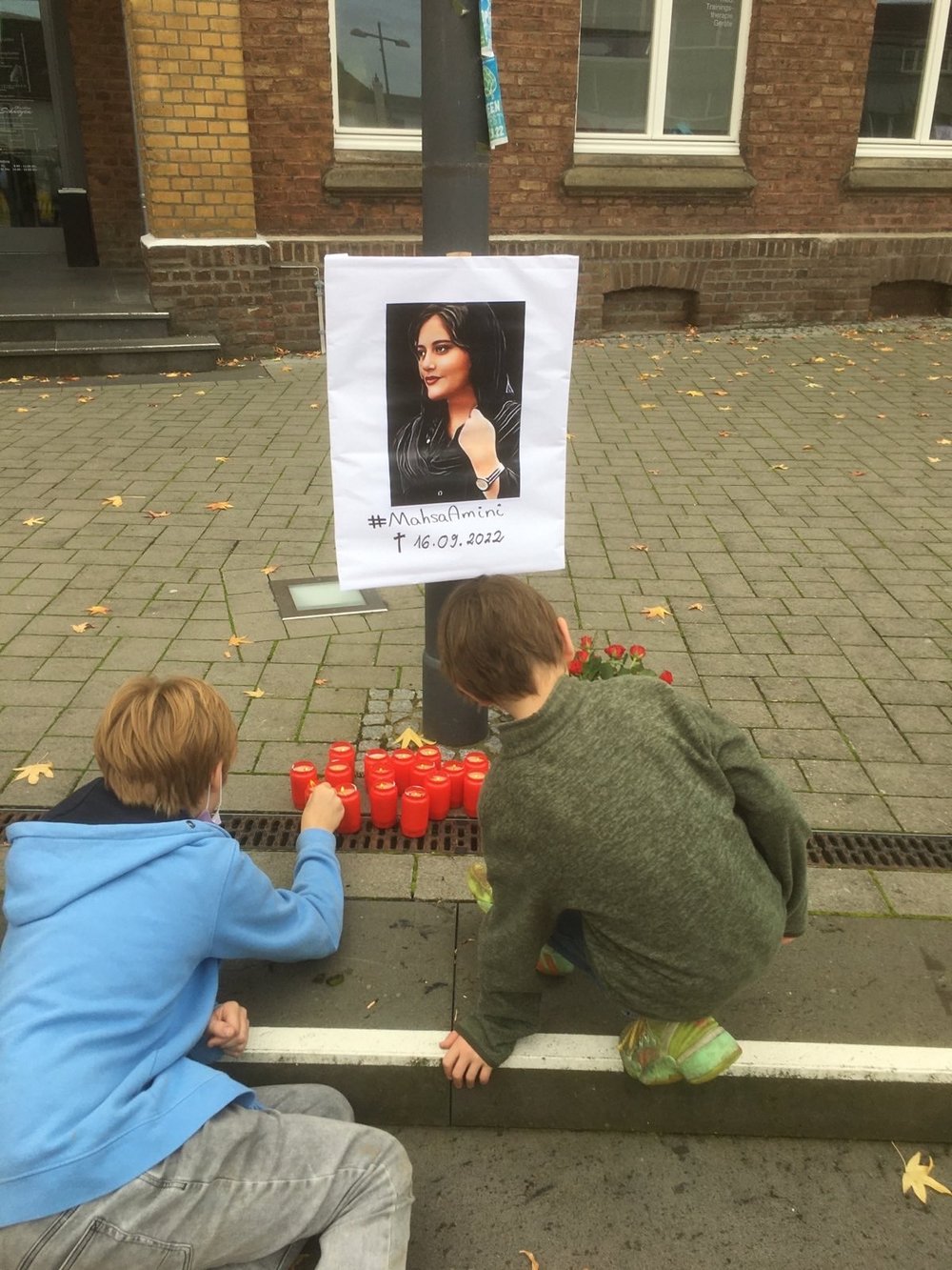 Ich möchte Euch jetzt bitten im Gedenken an Mahsa Amini und die getöteten Menschen, eine Kerze anzuzünden und eine Schweigeminute einzulegen. Als Zeichen unserer Solidarität.