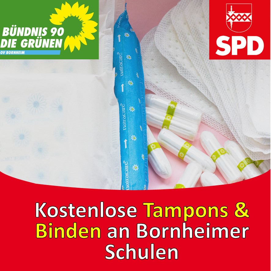 Bornheim wird Vorreiter gegen Periodenarmut: In allen weiterführenden Schulen können auf Antrag der Fraktionen von SPD und Grünen bis zum Schuljahresende Tampons und Binden kostenfrei genutzt werden.